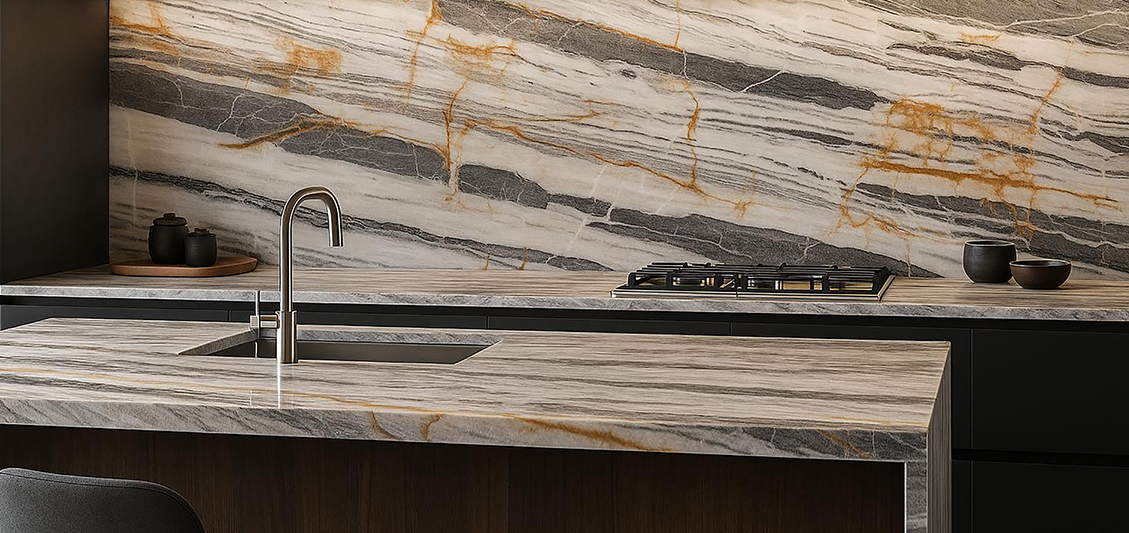 Yeni lisanslı Rouge Suede taş ocağımız, koyu kırmızı tabanı ve zarif beyaz damarları ile mermer yelpazemizi genişleterek cesur ama zamansız tasarımlar vaat ediyor. Şu anda geliştirme aşamasında olan Rouge Suede, gerçekten farklı bir şey arayan yaratıcı zihinlere ilham verecek.