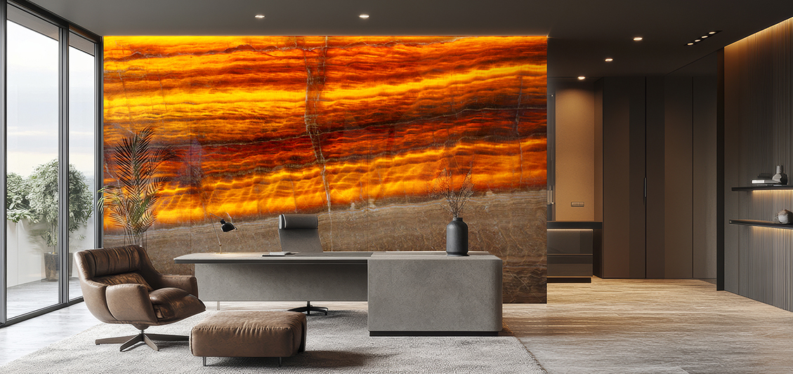 Minhan Stoneworks, Türkiye’nin en zengin rezervlerinde bulunan kendi ocaklarından birinci sınıf oniks ve mermer çıkararak, ham blokları dünya çapındaki mimarlar, tasarımcılar ve sanatçılar için rafine yüzeylere dönüştürmektedir.